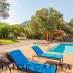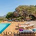 Der Poolbereich mit Sonnenterrasse, Außendusche und Umkleidekabine bietet Momente der puren Entspannung mit Blick auf den Golf von Cugnana am Horizont.
