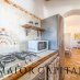 Gli interni, curati nei minimi dettagli, riflettono un’eleganza senza tempo con un raffinato stile shabby chic. Le tonalità sabbia e bianco, arricchite da elementi marini, si armonizzano perfettamente con il contrasto del legno scuro delle porte e degli arredi, mentre i bagni in cera sarda esaltano l’autenticità del design locale.