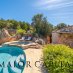 Il giardino terrazzato si integra perfettamente con la morfologia del terreno, e la piscina privata, incorniciata da rocce naturali e piante aromatiche, è il punto focale dell'area esterna. A completare l’ambiente esterno, un angolo prendisole, una piccola vasca idromassaggio e diverse zone ombreggiate, ideali per momenti di relax e benessere.