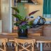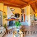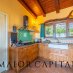 La cucina, completamente in legno, è caratterizzata da un ampio piano cottura affacciato sul giardino, mentre le finiture artigianali e la cura nei dettagli parlano di autenticità e qualità.